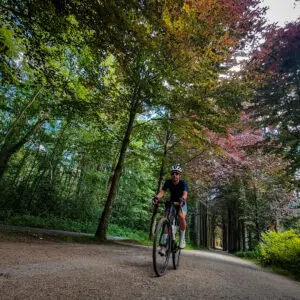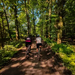 Na het Nationaal Park Brabantse Wouden reden we door het Heverlee Bos. Dit bos is een van de meest geliefde plekken voor lokale fietsers. De dichte bossen en kronkelende paden zorgden voor een avontuurlijke rit. Hier konden we echt de kracht en souplesse van onze gravelbikes testen.
