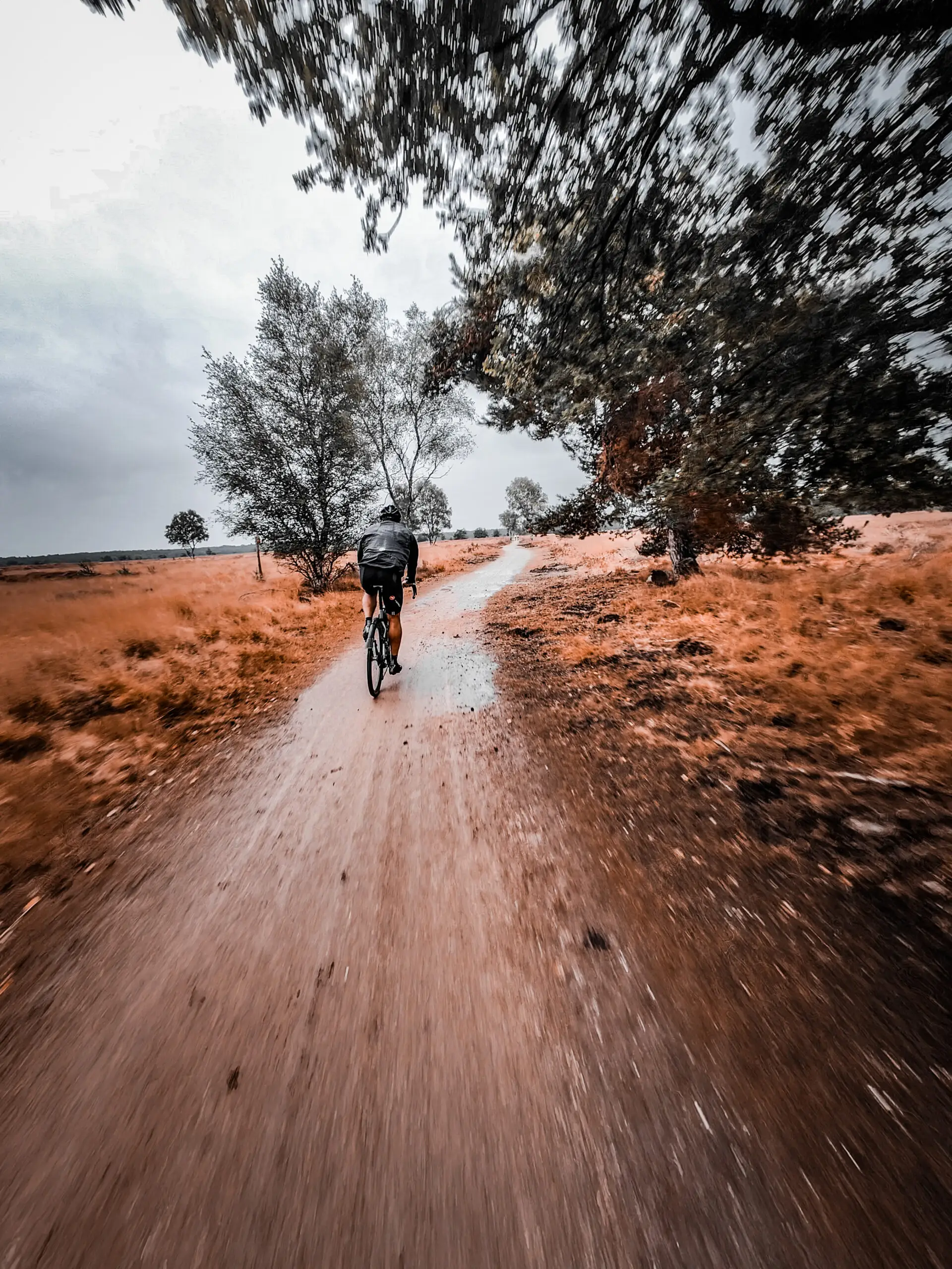 De route was lekker afwisselend met mooie gravelpaden, hei en bospaden en regen, ja best wel wat regen maar toch viel het ook wel mee, met goede kleding hou je toch een hoop tegen, koud was het zeker niet! Er zat zowaar weer een oude pauze stop in, waar je kon eten en drinken wat neergezet was door de wielerclub, ik zeg goed geregeld!