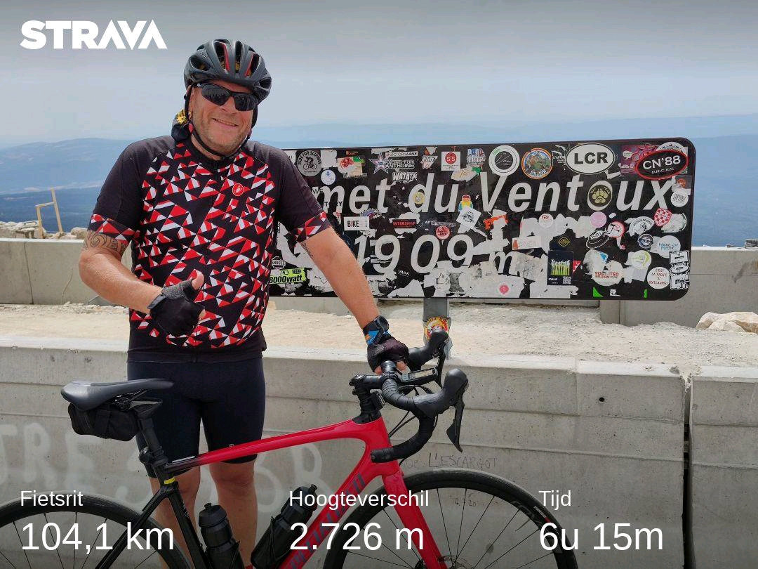 Holy Shit ,wat een rit en wat een Berg is die Kale Berg! Niet normaal toch? Dit is de shit hoor...! Wat een klim! Wat een hoogte! Warm , steil, afdalen is ook een ding! Maar toch boven gekomen! Genoten van het uitzicht! Gescholden op de weg ππ! 104 km Mont Ventoux! BAM! Bekijk mijn activiteit op Strava: https://strava.app.link/KMkSYnKzT8